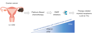 - Kwan TT, Oza AM, Tinker AV, et al. Preexisting TP53-Variant Clonal Hematopoiesis and Risk of Secondary Myeloid Neoplasms in Patients With High-grade Ovarian Cancer Treated With Rucaparib. JAMA Oncol 2021;7:1772-81. [Crossref] [PubMed]