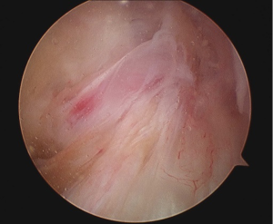 Arthroscopic excision is the gold standard treatment for patients with symptomatic intra-articular ganglion cysts, with Brown and Dandy showing that approximately 95% of patients reported positive outcomes (14). Although such a procedure necessitates hospitalisation and general anaesthesia, it has a low recurrence rate (15). A viable alternative would have been computed tomography (CT) or ultrasound-guided percutaneous aspiration. Advantages of this outpatient procedure would have included quicker recovery time and decreased invasiveness (8). However, the risk of recurrence is high (15-17) and it may be technically difficult in our case as the majority of the cyst was located posteriorly and part of it was interspersed in the ACL fibres.