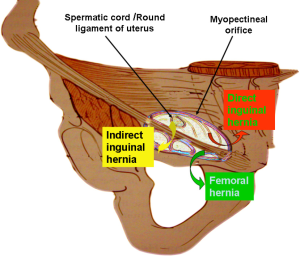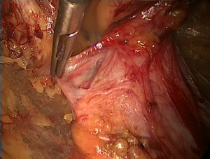 Cooper’s ligament (also known as the pectineal ligament) is easier to identify because it is white, shiny and tough tendinous tissue. It is an extension of the lacunar ligament, running infero-laterally along the pectineal line and attaching to the pectineal line. Cooper’s ligament is a structure that can hold a mesh and tacks.