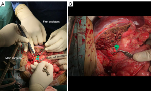 The site of hepatic artery anastomosis is usually deep within the abdominal cavity, which results in limited surgical motion and field of vision (57,58). This limited space may also cause kinking of the vessels post anastomosis and manipulation of the bile ducts may push the vessels into an undesirable orientation (26). To overcome this challenge, as mentioned previously, the role of the second assistant to manually retract the surrounding bowel loops and donor liver cannot be understated. Longer instruments of 18–21 cm, especially in the left hand of the main surgeon, are highly recommended (27). Another strategy the authors use when the limited space makes passing the needle difficult at certain sections of the anastomosis is to have the first assistant pass the needle instead of the main surgeon. This is often the case in situations where the main surgeon has to pass the suture via a backhand or any other awkward angle.