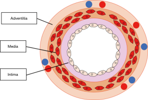 The cross-sectional anatomy of an artery is made up of the intima, media and adventitia (Figure 3). The adventitia is the layer with the highest tensile strength (52,53) and hence should not trimmed excessively to minimise the risk of suture cut out. Before the anastomosis, it is important to check for risk factors that can cause hepatic artery thrombosis. These include soft thrombus in the artery (these must be removed), intimal or medial wall dissection (vessel should be cut back to an area that is healthy), or intimal flaps protruding into the lumen (26). Intimal flaps may cause turbulence and should be trimmed off circumferentially.