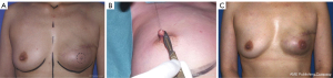 Czerny realized one of the first breast reconstruction attempts in 1895 using a lipoma for a lumpectomy. The first breast reconstruction with implant occurred in 1971, in a subcutaneous plan. Then it was combined with a latissimus dorsi (LD) flap in the late 1970s. Since then, implant-based breast reconstruction has gained popularity and acceptance among the public (3,4). Silicone breast implants have been the subject of many successive controversies questioning the use of these implants: capsular retraction, device failure, anaplastic large cell lymphoma (ALCL) and more recently, breast implant illness (BII) (5). Acellular dermis matrices have improved significantly the results of implant-based breast reconstruction (6) but remain a supplementary foreign body with its own share of problems (7,8).