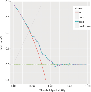 - Kerr KF, Brown MD, Zhu K, et al. Assessing the Clinical Impact of Risk Prediction Models With Decision Curves: Guidance for Correct Interpretation and Appropriate Use. J Clin Oncol 2016;34:2534-40. [Crossref] [PubMed]