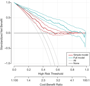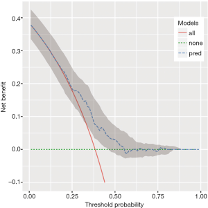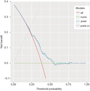 - Talluri R, Shete S. Using the weighted area under the net benefit curve for decision curve analysis. BMC Med Inform Decis Mak 2016;16:94. [Crossref] [PubMed]