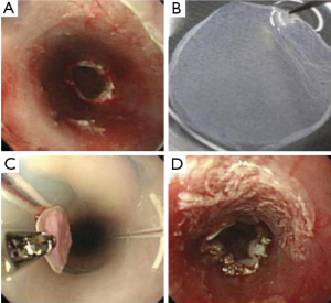 - Rajan E, Gostout C, Feitoza A, et al. Widespread endoscopic mucosal resection of the esophagus with strategies for stricture prevention: a preclinical study. Endoscopy 2005;37:1111-5. [PubMed]