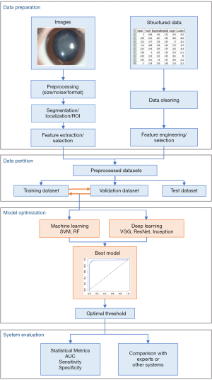 Apart from the usage of images, several ML prediction models using clinical and biometric variables have also been built (51-53). These models can be deployed to optimize the postoperative refractive outcome (53) and estimate the risk of pediatric cataracts (51) or posterior capsule opacification (52).