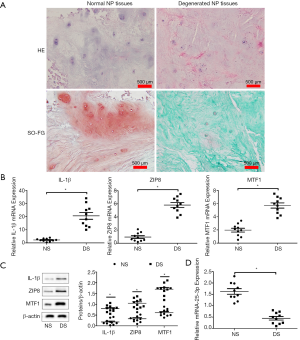 IL-1β, ZIP8 and MTF1 were overexpressed but miRNA-25-3P was downregulated in degenerated NP tissue