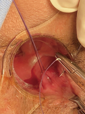 Spinal anesthesia was administered to each patient. During positioning, we kept the fistula at a lower position in the body for easier maneuvering, according to the location of the fistula (i.e., patients with left-sided anal fistulas were positioned in the left lateral position, patients with right-sided anal fistula were placed in the right lateral position, patients with posterior anal fistulas were positioned in lithotomy, and patients with anterior anal fistulas were placed in the jack-knife position). Next, we inserted the fistuloscope through the external opening and cautiously monitored its movement on the screen. The fistuloscope was gently and slowly advanced into the fistula to further straighten it. Meanwhile, continuous jetting of solution was carried out to ensure optimal visualization of the fistula lumen until the internal opening was localized and marked with 2–3 stitches at the edge. Subsequently, the filler was removed and replaced with the electrode, which destroyed the fistula tract wall under direct vision to cauterize all fragments of the whitish material attached to the fistula tract wall, covering all abscess cavities and fistula tract. The external fistula opening was enlarged and resected. We then returned to the rectum to close the internal opening using a stapler and ultimately performed hemostasis. Furthermore, drainage or negative pressure suction was applied to the external opening. The VAAFT surgical procedure is shown in Figures 1-3.