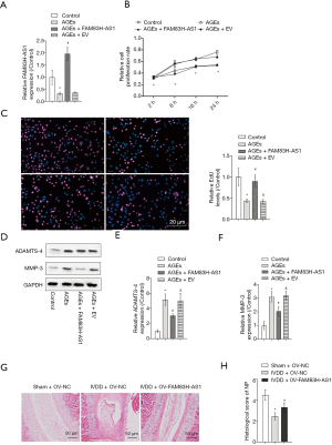 Overexpression of FAM83H-AS1 promoted NP cell proliferation, alleviated ECM degradation and prevented IVDD progression in vivo