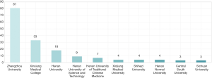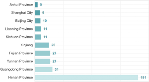 As shown in Figure 5, applicants in 20 provinces and municipalities received funding between 2015 and 2019. The researchers in the Henan Province obtained the most number of funding in the field of population health by the NSFC Joint Funds, which is a little unexpected.