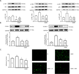 LY294002 and Bay11-7082 attenuated hyperglycemia-induced cell adhesion and ICAM-1/VCAM-1 protein