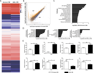LPMs from the AML microenvironment were defined as AML-LPMs, while those from the normal physiological microenvironment were defined as normal LPMs. SPMs and LPMs were sorted from peritoneal washes on day 15 after the injection of leukemia cells, and they were also obtained from normal mice. RNA sequencing was performed by the Beijing Genomics Institute using BGISEQ-500 following the standard protocol.