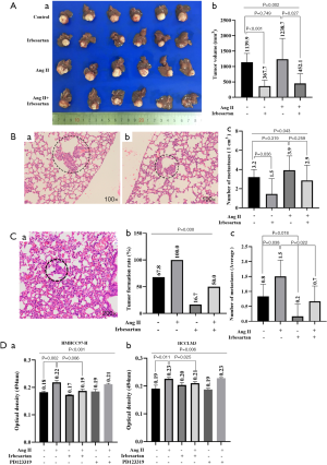 Irbesartan inhibited the growth and lung metastasis of HCC in vivo