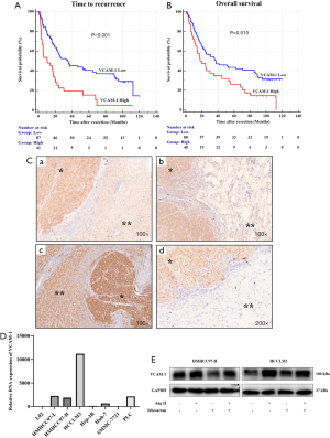 The adhesion molecule VCAM-1 was associated with a poor prognosis of HCC with MVI and was highly expressed in HCC tissues and lung metastases