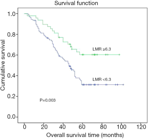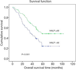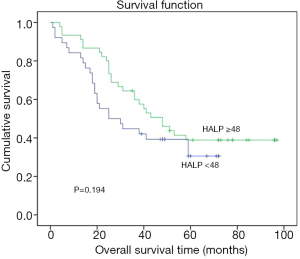 - Chen XL, Xue L, Wang W, et al. Prognostic significance of the combination of preoperative hemoglobin, albumin, lymphocyte and platelet in patients with gastric carcinoma: a retrospective cohort study. Oncotarget 2015;6:41370-82. [Crossref] [PubMed]