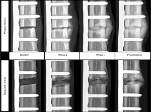 - Panjabi MM, Walter SD, Karuda M, et al. Correlations of radiographic analysis of healing fractures with strength: a statistical analysis of experimental osteotomies. J Orthop Res 1985;3:212-8. [Crossref] [PubMed]