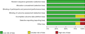 According to the Cochrane risk-of-bias assessment tool, we assessed the methodological quality of the included studies for risk of bias. We found high selection bias and other biases in three different studies (Figure 2). A summary of the risk-of-bias assessment of the eight included studies is shown in Figure 3.