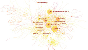 Many molecular therapeutic targets for hematological malignancies have been discovered with the deepening of molecular biology research and technological advancement (9,17-20). The drugs developed in this way delay the progression of the disease to a significant extent and significantly improve the patient’s disease-free survival (DFS) and quality of life (21-23). However, some authors believe it has not helped complete the eradication of tumors (9). However, several recent studies have shown that targeted therapy based on the TME can significantly improve DFS (23,24). This study shows that the research in this field has experienced a typical process, from primary to clinical. Initially, it was mainly experimental research to deeply analyze the expression characteristics and mechanism of various factors in the microenvironment of tumor cells (25), changes in matrix composition in the bone marrow and other tissues (26). It gradually shifts to the relationship between the specific tumor and the microenvironment (27) until the vital research of immunotherapy in recent years (28). Of course, researchers are still deeply studying the relationship between numerous factors and cells in the TME and lymphoma, leukemia, and myeloma. Related research results are also published continuously, but these studies have been accumulated for a long time in the early stage. Further exploration based on work also explains why most research is concentrated on a few medical research institutions in the United States.