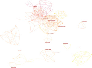 The top three researchers with the number of papers published in this field are Anderson KC, Ansell SM, and Gascoyne RD. However, the centrality scores are all low, and only 5 researchers who reach over 0.01 are: Gascoyne RD, Anderson KC, Gribben JG, Steidl C, and Wilcox RA indicate that although some authors have published more papers, there is less collaboration among authors (Tables 7,8, Figure 5). In terms of paper citations, the top three authors of citations are Burger JA, Hideshima T, and Steidl C, but the top three co-cited centralities (the third had two authors) are Anderson KC, Simmons PJ, Gabrilovich DI, and Bataille R (Tables 9,10), and most of these authors are from the United States. The author’s co-cited visualization map (Figure 6) shows that the authors have more intensive mutual citations, reflecting that the main research results in this field are concentrated on these authors.