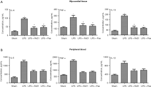 - Zhang J, Wang M, Ye J, et al. The Anti-inflammatory Mediator Resolvin E1 Protects Mice Against Lipopolysaccharide-Induced Heart Injury. Front Pharmacol 2020;11:203. [Crossref] [PubMed]