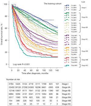However, even with maximum effort, the total number of retrieved lymph nodes is frequently inadequate, with 26.8% of patients in the training cohort and 31.6% in the validation cohort having inadequate numbers of retrieved lymph nodes, in line with previous reports (9,10). This could be due to multiple factors, including surgical skills and technique, the way the pathologist collects the lymph nodes, the actual number of regional lymph nodes surrounding the tumor, and even the patient’s immune response (23-25). In addition, although some studies suggested that pT stage had a much lower weight than the pN stage in the AJCC TNM classification (5,6,26), pT stage was shown to have comparable importance to pN stage, regardless of the number of retrieved lymph nodes (7,8). Overall, the current AJCC TNM 8th TNM classification could not predict survival adequately, indicating the need for a modification or revision of the current classification.