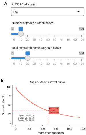 A web tool based on the novel TLNR classification was developed to predict individual overall survival (Figure 3). The details of the novel TLNR classification are presented in Figure 4.