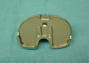 All patients received a posterior-stabilized (PS) fixed-bearing implant. Forty patients (group A: design 1) were randomly selected to receive a Nex-Gen Legacy posterior substituting TKA implant (Nex-Gen LPS, Zimmer, Warsaw, IN, USA), characterized by a symmetric tibial baseplate (Figure 2). Forty patients (group B: design 2) received a Persona, The Personalized Knee System TKA implant (Zimmer, Warsaw, IN, USA), characterized by having an anatomical tibial baseplate (Figure 3).