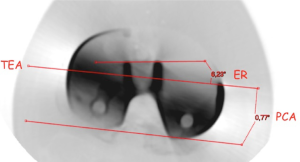 Historically, rotational malalignment after TKA has been related to patient dissatisfaction and premature failure (8,23,24). While the TEA has been recognized as a primary reference for the rotational alignment of the femoral component (25-28) when the “measured resection” technique (21) is intra-operatively chosen, there is minimum consensus regarding a primary reference for the tibial rotational alignment. In fact, several surgical techniques, each one based on the use of a different anatomical landmark, have been proposed as being accurate for tibial rotational alignment in TKA (29-31).