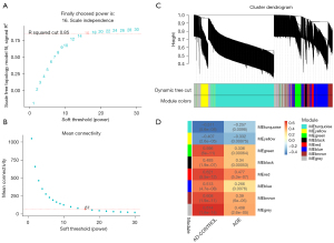 - Sun Y, Lin J, Zhang L. The application of weighted gene co-expression network analysis in identifying key modules and hub genes associated with disease status in Alzheimer's disease. Ann Transl Med 2019;7:800. [Crossref] [PubMed]