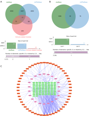 Construction of the ceRNA subnets related to key immune cells and verification