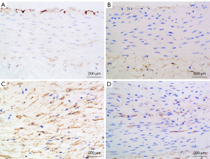 This study had some limitations. First, previous publications have used techniques such as dynamic enhancement magnetic resonance and positron emission computed tomography that can indirectly respond to vascular and macrophage changes in the plaques in experimental animals (25,26); however, due to the limitations of the experimental conditions, the present study used delayed enhancement scans for VWMRI, which did not reflect the changes of intraplaque neovascularization and macrophages during the treatment. Second, while the rabbit’s abdominal aorta is close to the spine, the artifacts generated by the breathing motion of the rabbit are still a key factor affecting the image quality of the rabbit’s abdominal aortic vessel wall. Because of the wide range and high spatial resolution of the 3D sequence scan, which is susceptible to motion artifacts (27,28), the plaque signal at some levels may be disturbed by this motion artifact. Finally, while we strictly followed the bilateral renal artery openings to local the radiologic-pathologic correlations, the thickness of the pathological sections was significantly smaller than the layer thickness of the MRI scans, so the radiologic-pathologic correlations inevitably had some errors.