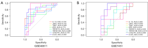 The key genes were verified by qRT-PCR. To evaluate the role of key genes in the other tissues of pSS, we validated the key genes above by performing ROC analysis with the training dataset GSE7451 and GSE40611 using the “pROC” R package. The key genes with an area under the curve (AUC) >0.7 and a P value <0.05 were deemed to be meaningful (29).