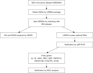 - Xiong Y, Mi BB, Liu MF, et al. Bioinformatics Analysis and Identification of Genes and Molecular Pathways Involved in Synovial Inflammation in Rheumatoid Arthritis. Med Sci Monit 2019;25:2246-56. [Crossref] [PubMed]