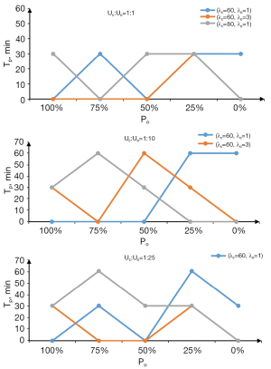At the same time, the experiment considered the severity of the epidemic and attempted to design an optimal strategy for when Uc:Uo=1:25, 1:10, and 1:1. The choice of optimal strategy was greatly affected by the severity of the epidemic. When Uo was lower, shortening Tp was conducive to shortening T (Figure 9).
