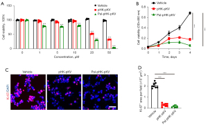 For apoptosis detection, the cells were prepared and treated with or without pHK-pKV or Pal-pHK-pKV at a concentration of 5 µM for 48 h at 37 ℃. 1×105 cells were collected and washed twice with PBS, and then resuspended by 100 µL binding buffer. Next, 5 µL of Annexin and propidium iodide (PI) from an apoptosis kit (MB0220, Meilunbio, China) were added to each tube and incubated in the dark for 15 min at room temperature. Apoptosis was then measured by flow cytometry (FACSCanto II, BD), and the data was analyzed by FlowJo V10 (BD).