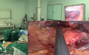 Most surgeons believe that single-incision laparoscopic operations are difficult. In fact, SILS-TEP has both advantages and disadvantages. During SILS-TEP, the laparoscopic surgical instruments and camera enter the surgical area via the same incision, and an instrument must be pressed against the peritoneum at all times to maintain visibility in front of the lens, even if the peritoneum is ruptured at the start of the surgery. Peritoneal rupture could prolong the operation time of SILS-TEP, but there is no need to switch to TAPP surgery. In SILS-TEP, one instrument is used to pull or press on the peritoneum to assist in exposing the surgical field, and another instrument performs the tissue separation, thereby widening the preperitoneal space. Mobility is guaranteed in this surgical procedure because only one instrument moves frequently.