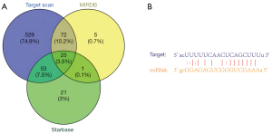 In order to further clarify the specific mechanism of GE-mediated AKT in the protection of RPE mitochondrial function under hyperglycemia by inhibiting JAK2, this study predicted JAK2-targeted miRNAs using TargetScan 7.2, MIRDB, and Starbase 3.0 and obtained the intersection. Finally, 25 miRNAs were obtained (Figure 8A). Based on the literature review, miR-4429 was shown to be a downstream miRNA molecule of AKT. The potential binding site of miR-4429 and JAK2 was predicted by online databases (Figure 8B). Therefore, this study suggested that GE protects against the mitochondrial damage of RPE cells under hyperglycemia by mediating miR-4429/JAK2 through the AKT pathway.