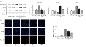Apoptotic myocardiocytes were also stained using TUNEL assay (Figure 4B). A significant increase in TUNEL-positive cells was observed in the cardiac sections from septic mice compared with the control group. In contrast, after treatment with Shenfu injection, TUNEL-positive fewer myocardiocytes were found in mice after CLP.