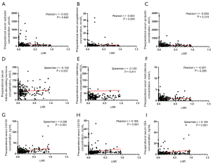 Correlation of LNR with preoperational serum hormone concentration and tumor markers