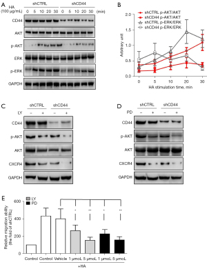 HA-CD44–induced CXCR4 upregulation is AKT/ERK-activity dependent
