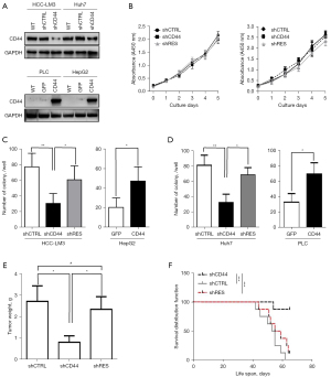 CD44 promotes HCC cell colony formation and tumorigenicity in vivo