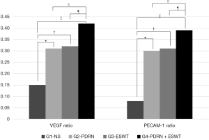 | PECAM-1 ratio | 0.08±0.06 | 0.30±0.05* | 0.31±0.09† | 0.39±0.08‡∥¶ |